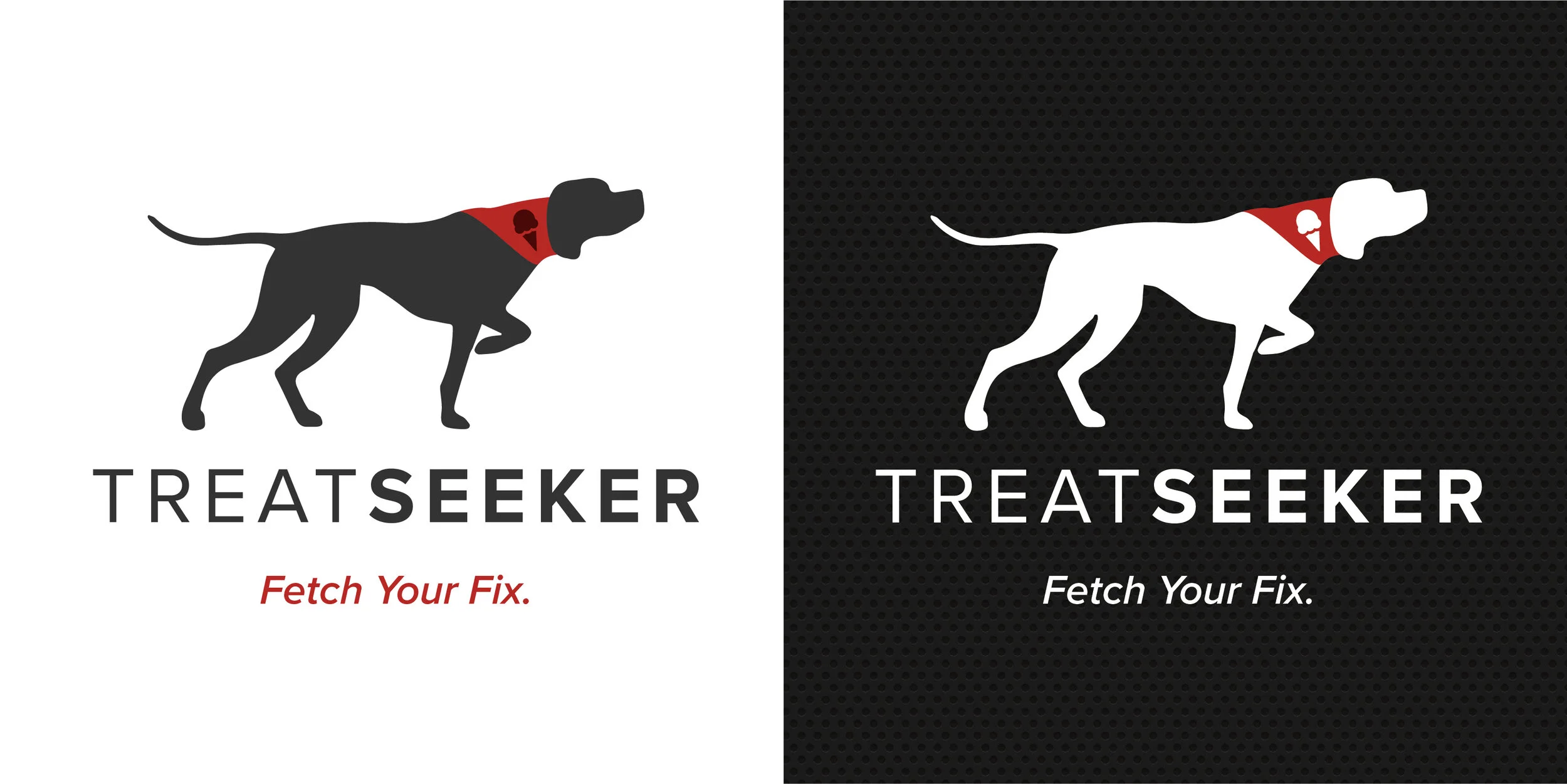 Next, I designed a logo that aligned with the overall goal and mood for the brand. The logo features a Pointer dog, known for sniffing out and tracking down game and pointing hunters in the right direction. The dog’s bandana features an ice cream cone to show he’s sniffing out treats.